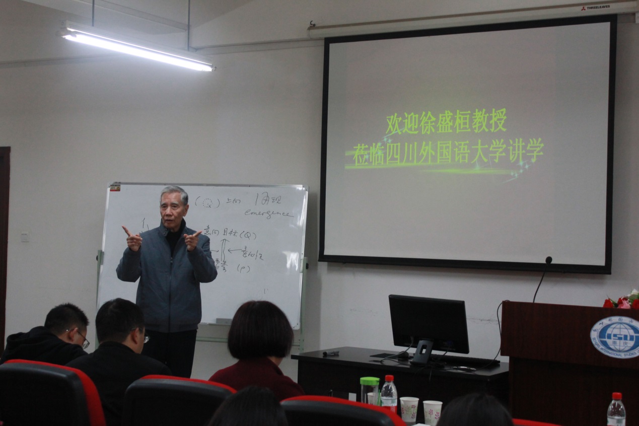 应我校研究生院邀请,著名语言学家、国务院有特殊贡献专家、河南大学博士生导师徐盛桓教授于2016年11月14日下午16:00在博文楼六楼报告厅举行了题为“非字面义表达研究”的学术讲座。讲座由廖巧云教授主持,众多博士、硕士研究生以及校内外青年教师参加了本次学术活动。