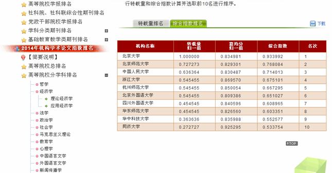 排名详情请参见http://www.zlzx.org/rssi2014/index.htm#