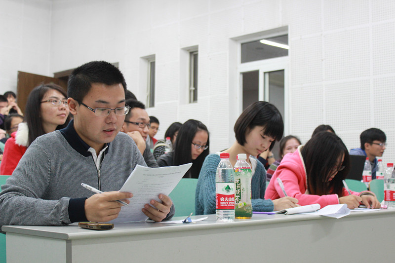 此次比赛吸引了来自研究生院及翻译学院2012级和2013级多名研究生同学报名参加。本次大赛分为演讲环节和问答环节。在演讲环节中选手们围绕“When Socrates Meets Confucius”这一有趣的话题展开生动的讲演。而在问答环节,选手机智的应答能力给评委和观众留下了深刻印象。经过激烈的角逐,最终有8位选手凭借出色的实力和稳定的发挥进入决赛。