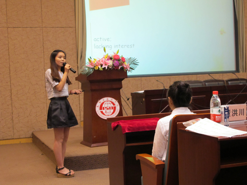 教学技能大赛为英语专业的研究生们提供了一个很好的平台来展现他们自己。选手们各显其能,以饱满的激情、流利的英语、丰富的教学活动、精美的课件制作以及和现场同学的互动营造真实的课堂气氛博得了评委老师和在场观众的掌声。评委们则以他们特有的专业眼光,专心致志地记录选手表现,给出精彩点评并提出各类专业问题。面对评委的提问,选手们个个机敏睿智、应答自如。经过长达三个小时的激烈比拼,来自西南大学的何林同学最终勇摘桂冠。