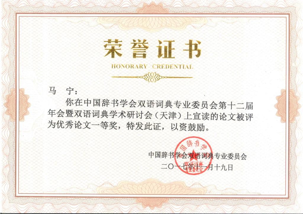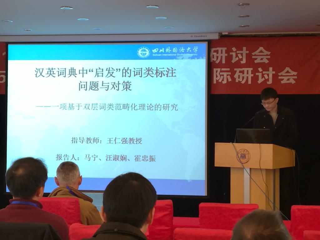 11月18日下午,大会采取全体与会者无记名投票和双语词典专业委员会常务理事会集中讨论的方式,推选出了10篇青年学者优秀论文,其中一等奖3篇,二等奖3篇,三等奖4篇。我校博士生马永强的论文“基于复杂适应系统语言观的现代汉语新词词化研究——以‘高大上’为例”和硕士生马宁、汪淑娴和霍忠振的论文“汉英词典中‘启发’的词类标注问题及对策——一项基于双层词类范畴化理论的研究”分别获得本次大会优秀论文评选一等奖。霍忠振同学还作为优秀论文一等奖获得者代表做大会发言。我校一次性囊括青年学者优秀论文奖3项一等奖中的2项,这无疑是对我校词典学人才培养质量的高度肯定。