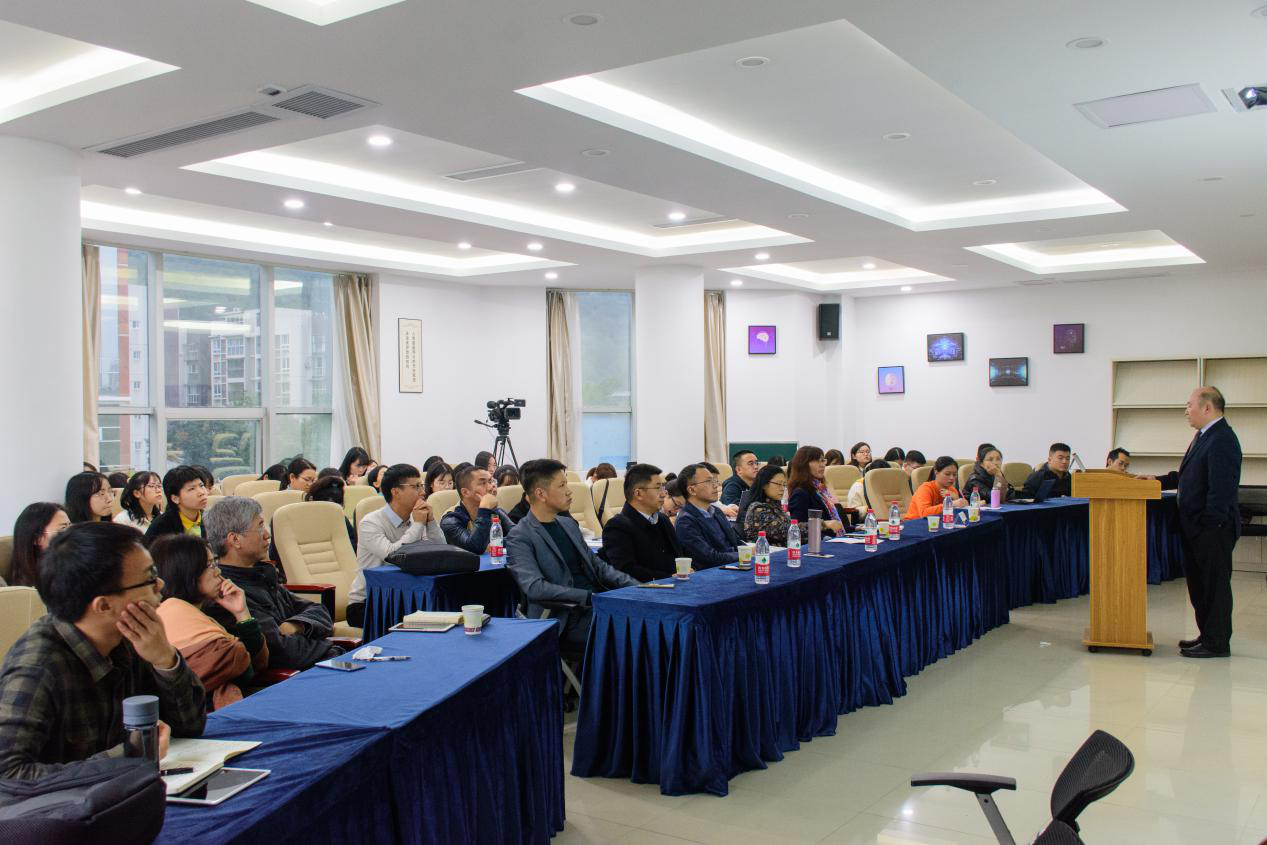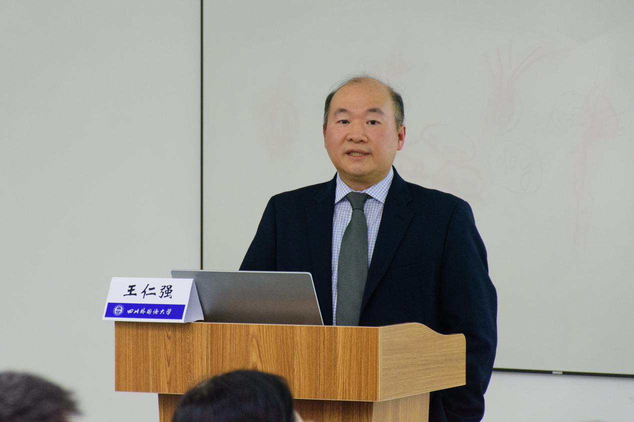 2020 年 11 月 2 日下午,雷竞技在线进入游戏副校长、词典学研究所所长、博士生导师王仁强教授做客界面研究与认知诗学论坛,在博文楼 401 报告厅作了题为“唯科学主义与语言学研究” 的学术讲座。讲座由吴淑琼教授主持,赵翠莲教授、胡文飞教授、张宏教授 、马武林教授、刘宇教授、苏杭教授、董曼霞博士、邓宇博士等众多教师、硕博士研究生100余人参加了本次讲座。