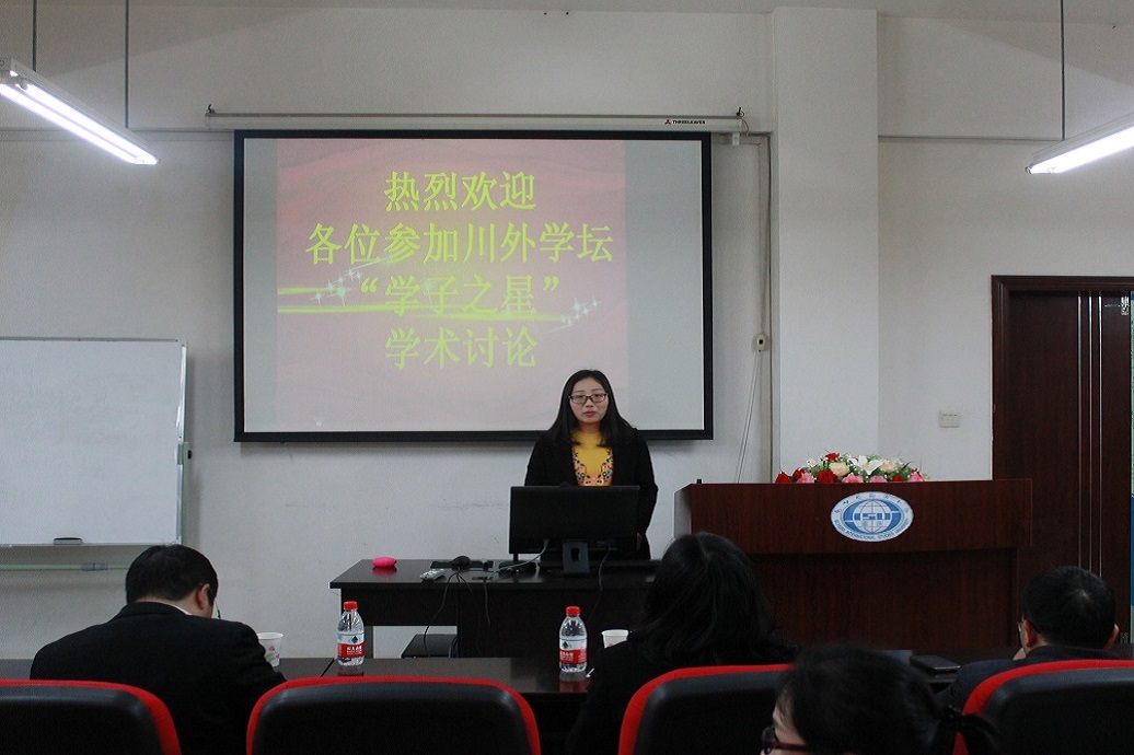 2017年3月9日晚上7:00,川外学坛“学子之星”学术讨论会在博文楼六楼报告厅顺利举行。本次讨论会的主题为“国内外双语失语症的研究进展”,主讲人是2015级研究生曹英倩同学和李爱莲同学。此次讲座由2015级研究生荣彩秀同学主持,姜孟教授、邬德平博士、牟丽老师、何巧玲老师等出席,此外各年级研究生参与了本次讲座。