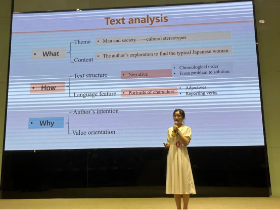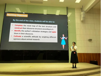 来自五大高校的选手们齐聚川外,按照赛前随机抽签的顺序依次进行比赛。比赛过程中,选手们准备充分,声情并茂,从容不迫,展现出了教师风范,给台下的评委和观众留下了深刻的印象,赢得阵阵掌声。评委们仔细观看选手们的教学设计,认真记录他们的表现,并提出专业的问题,选手们也在思考后认真流畅地回答,展现了自己的教学素养。